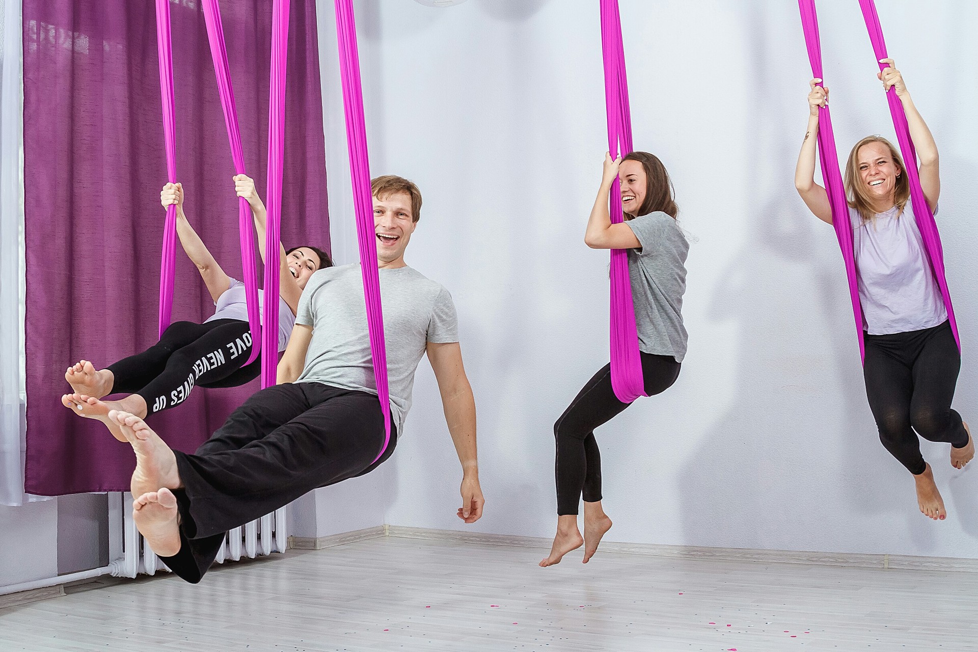 •Место для занятий дома или в студии с Вашим личным гамаком;